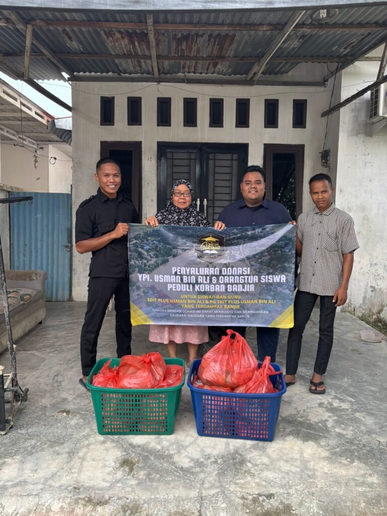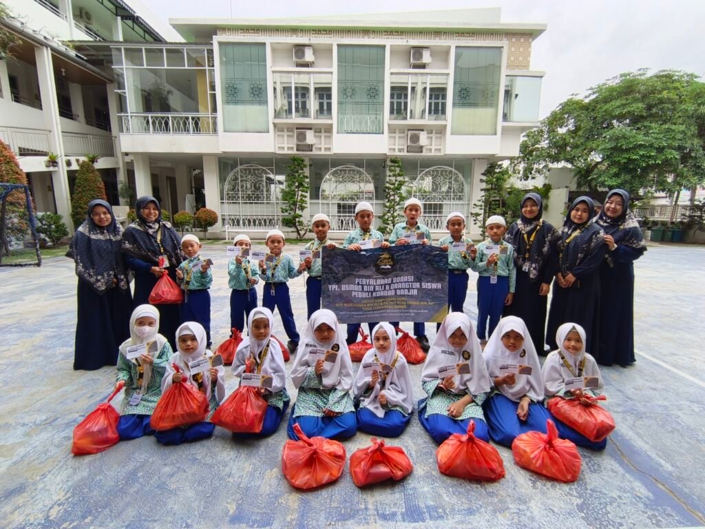 Yayasan Pendidikan Islam Usman Bin Ali menyalurkan donasi yang dikumpulkan dari yayasan dan orangtua siswa kepada siswa dan warga disekitar sekolah yang terdampak bencana banjir
